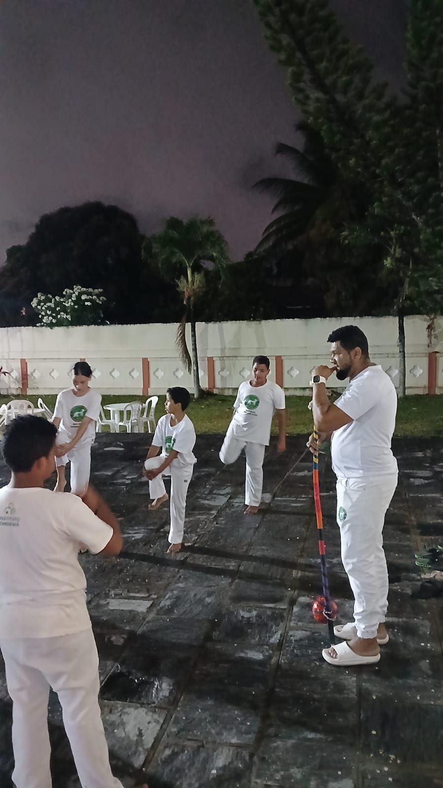 Sob a condução técnica e espiritual do Mestre Lucivan Laranjeiras, a atividade noturna marcou um momento de maturação para a turma de crianças e adolescentes, que demonstraram o domínio dos fundamentos aprendidos nas aulas realizadas em parceria com a Escola Mukambu.